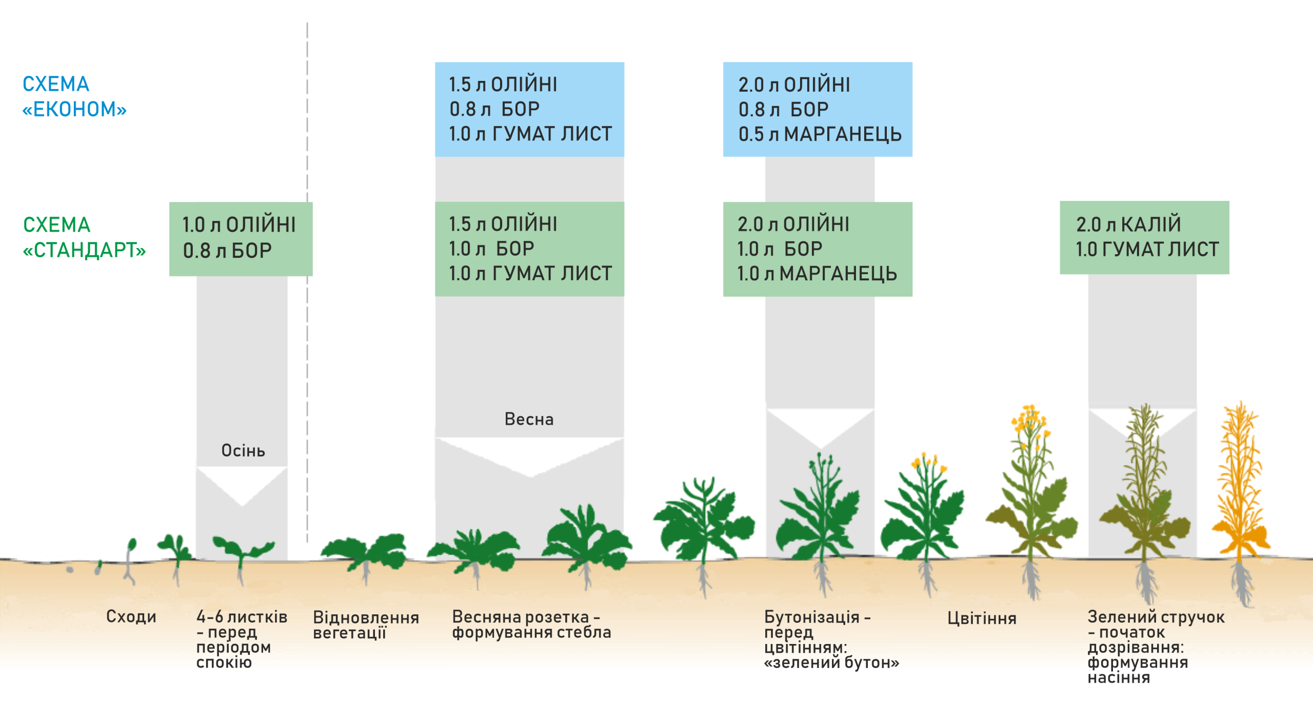 Для приготування робочого розчину за основу як правило беруть «Florenta» ОЛІЙНІ. Це добриво містить одночасно всі необхідні макро- та дуже широкий спектр мікроелементів. При цьому елементи кількісно збалансовані таким чином, щоб повністю відповідати базовим поживним вимогам ріпаку.